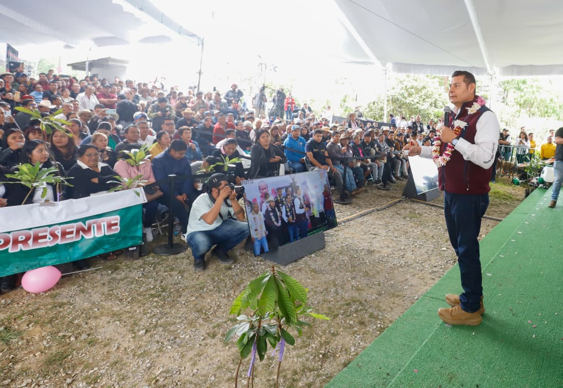 Durante una gira en el municipio de Zoquitlán, el gobernador de Puebla, Alejandro Armenta, subrayó que el objetivo es sembrar frutales en beneficio de toda la población y productores, para posteriormente instalar una procesadora y dar valor agregado a las frutas.