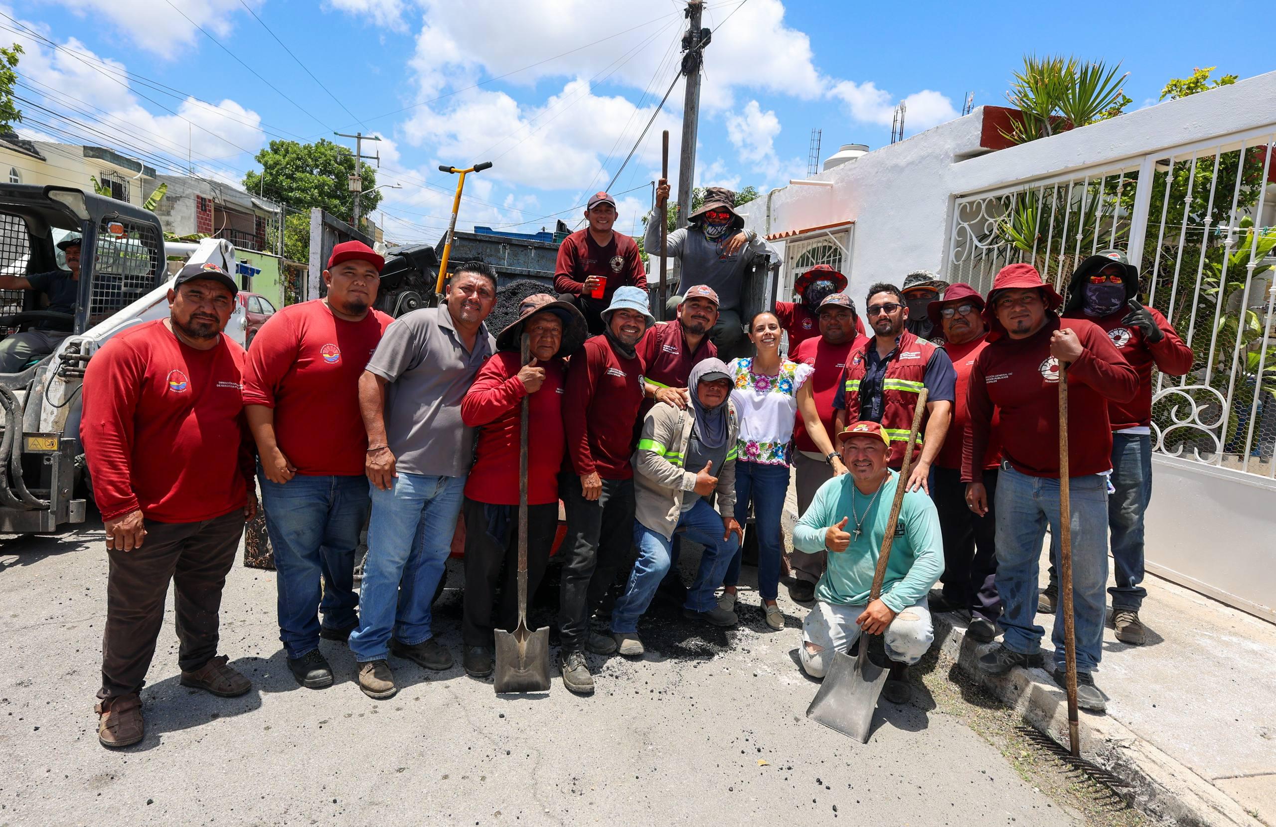La Presidenta Municipal, Ana Paty Peralta, supervisó los trabajos de bacheo con maquinaria en la Supermanzana 101, donde ratificó el compromiso con la ciudadanía de contar con vialidades en óptimas condiciones para mejorar la seguridad vial y la afluencia de vehículos en la zona.